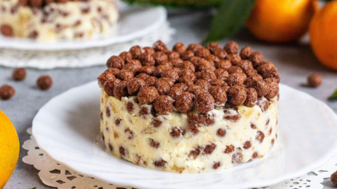 Як бачите, все просто. Торт приготувати можна просто зібравши разом інгредієнти. Всього 15 хвилин вашого часу. До речі, в торт можна класти і цілі сніданкові кульки. Можна також міксувати. Смачного!
