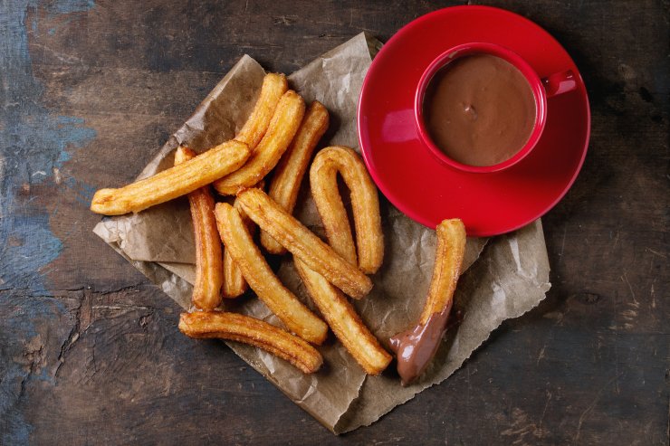 Чурос — відомий іспанський десерт. Це обсмажене заварне тісто із солодкою посипкою. Також чурос їдять з шоколадом. Дуже смачно. Давайте спробуємо і ми приготувати іспанські солодощі.