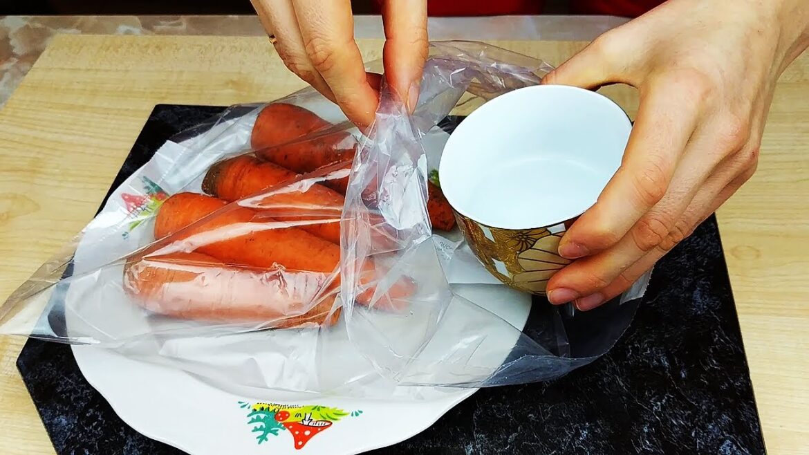 Одна з головних особливостей швидкого способу приготування моркви полягає у збереженні її цінних властивостей: вітамінів та мінералів. Все, що вам знадобиться — це пакет та трохи води.