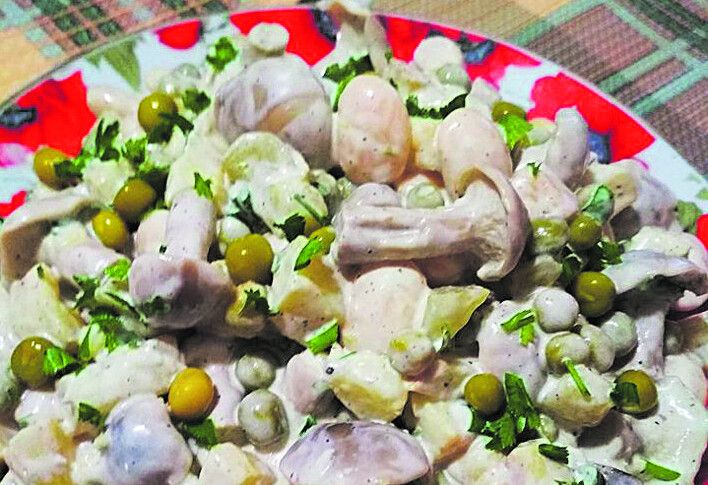 Home Рецепти Грибний салат з зеленим горошком для святкового столу