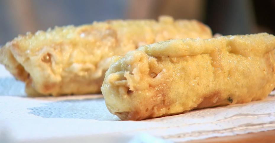 Обмокніть у збите яйце та запаніруйте в сухарях з сиром. Обсмажте рулетики у фритюрі. Смачного!