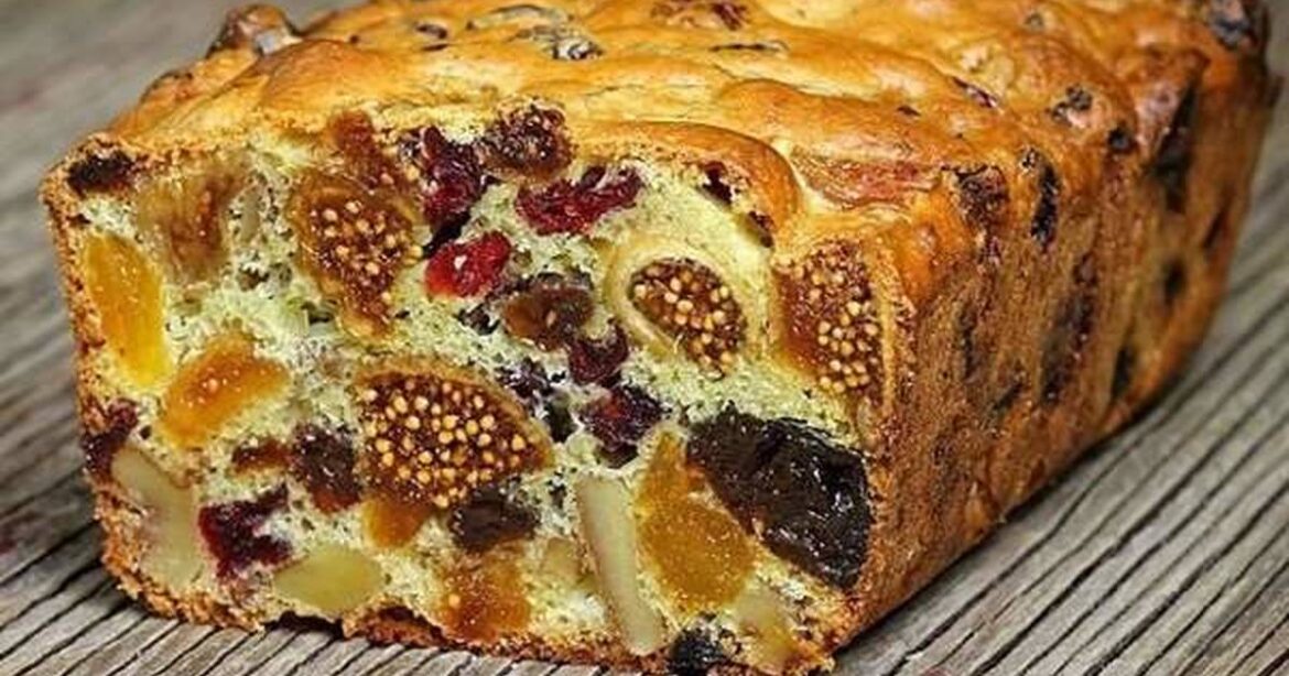 Цей кекс має насичений смак сухофруктів та хрумку структуру, завдяки горіхам у тісті. Готується швидко, тож за годину будете мати смачний кекс до чаю.
