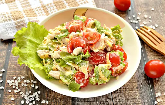 Неймовірно легкий та смачний салат з куркою, сиром та овочами. Ви приготуєте його всього за 5 хвилин. Головне, щоб вдома були потрібні інгредієнти.