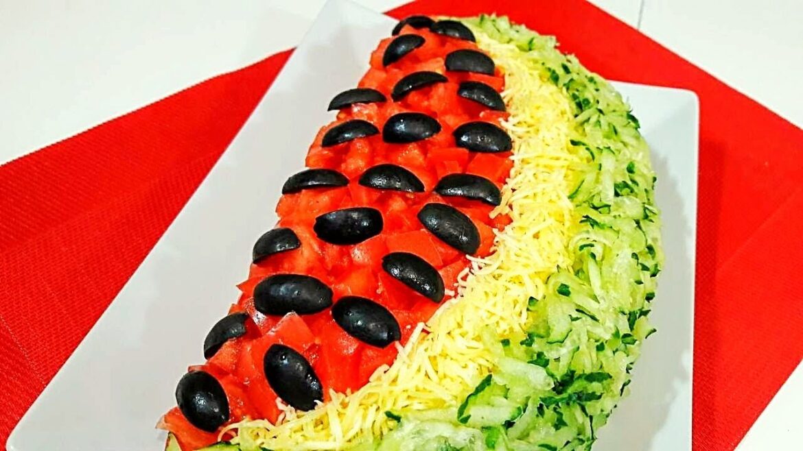 Коли взимку захочеться відчути смак літа, приготуйте це салат. Його вигляд нагадає вам спекотний день, коли ви смакували достиглим кавуном.