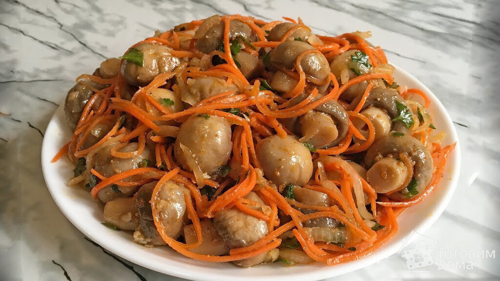 Викладіть гриби на тарілку та охолодіть. За бажанням присипте рубленою зеленню. Це дуже просто та смачно. Спробуйте та переконайтесь. Смачного!