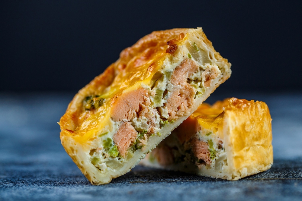 Home Рецепти Мініатюрний сирний кіш з рибою та броколі