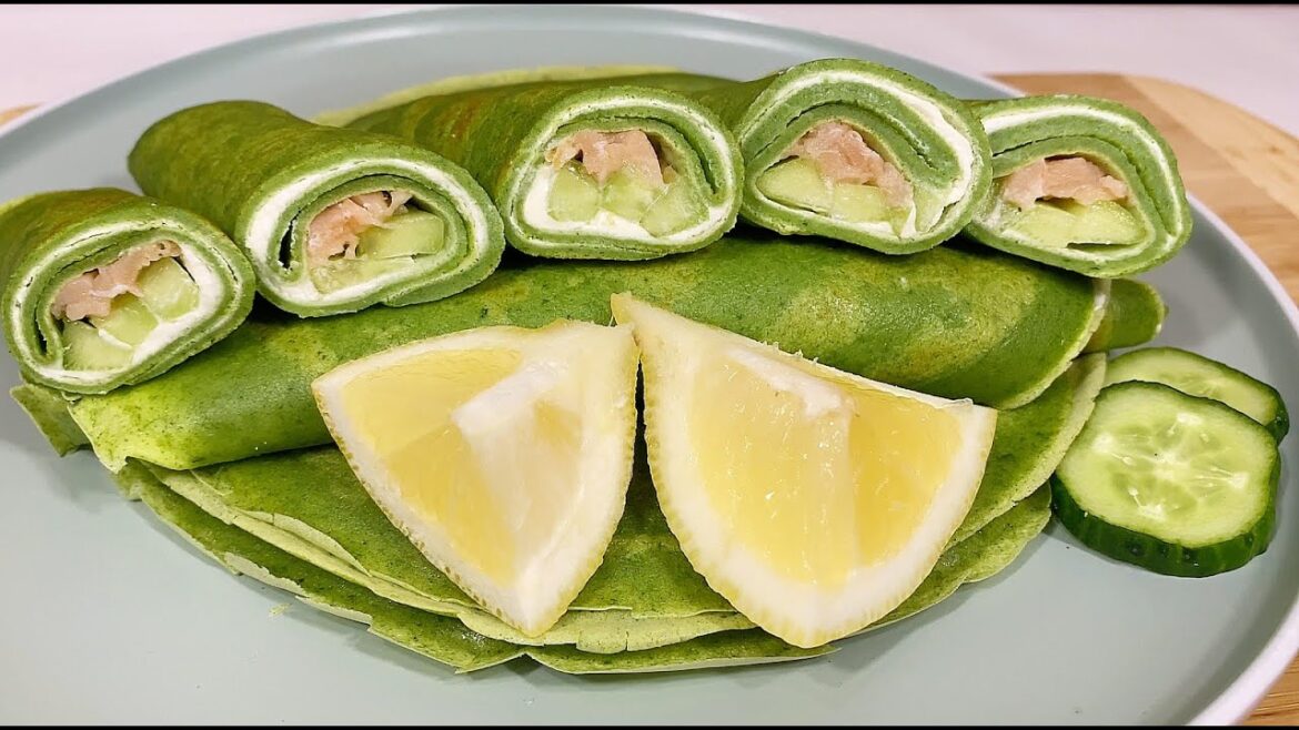 Приготуйте на сніданок або на перекус ці смачні зелені млинці. Ніжна сирна начинка у поєднанні з червоною рибкою, що може бути кращим.