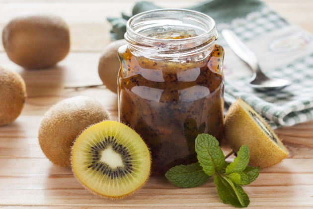 Зберігати таку заготівлю з аґрусу та ківі потрібно в холодильнику.