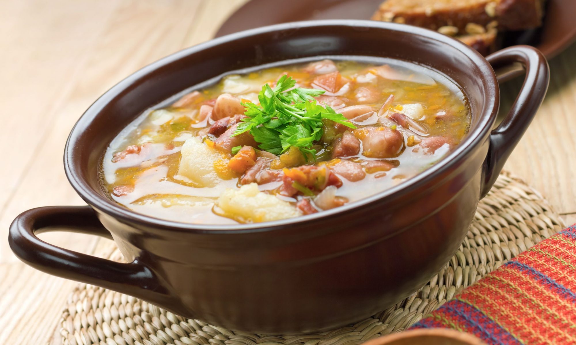 Цей суп цінний на білки. В ньому квасоля, горох, курка. Насичений смак та поживність — його беззаперечна перевага. Якщо ви любите смачно поїсти в обід, тоді спробуйте суп за цим рецептом.