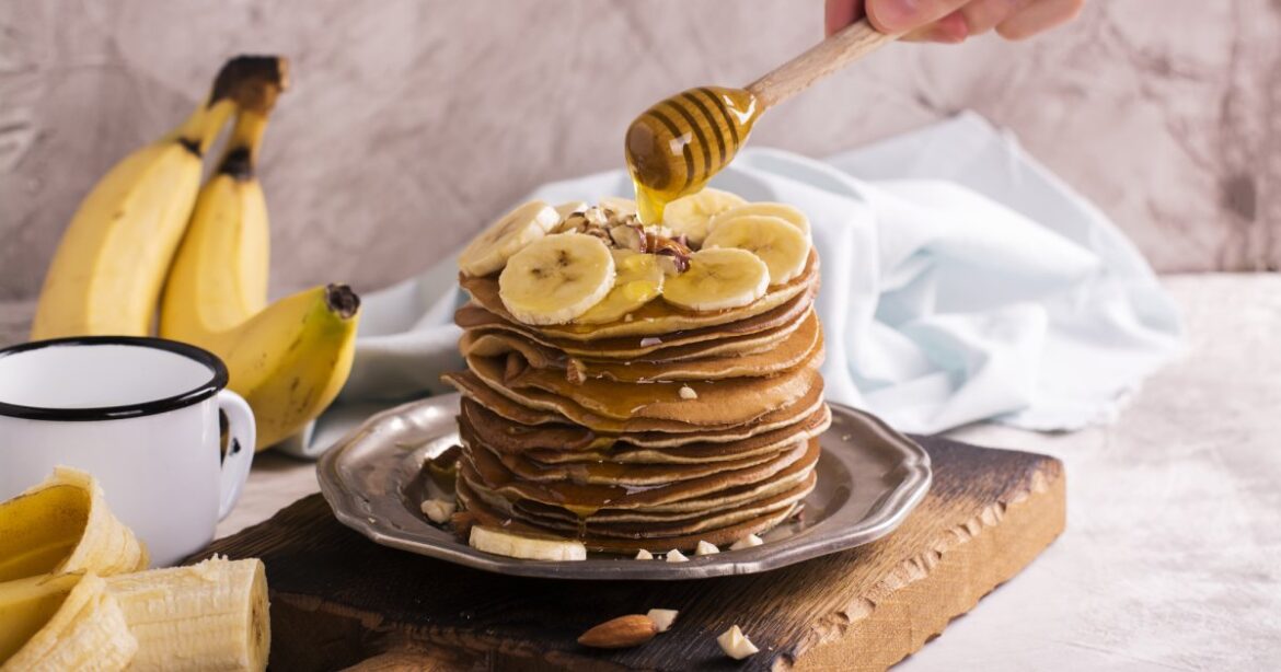 Подавайте вівсяні оладки з бананом, на сніданок або полудень зі сметаною, медом або джемом.