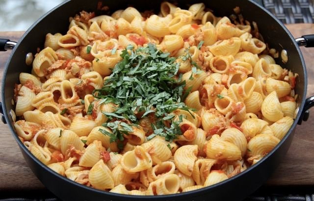Легкий і швидкий рецепт макаронів або пасти з тунцем і помідорами, соус готується з консервованого тунця, помідорів, цибулі, оливкової олії, і орегано/базилик. Паста з тунцем та помідорами ідеально підходить для тих випадків, коли потрібно в останню хвилину приготувати щось дуже смачне та ситне.