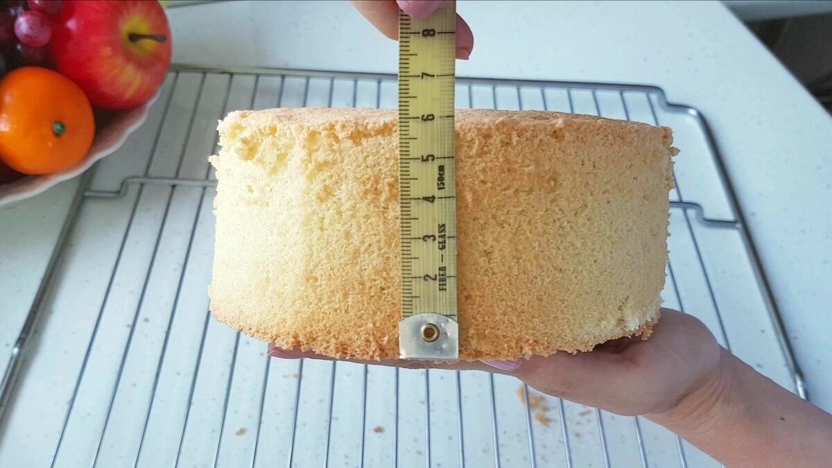 Бісквіт виходить дуже м’яким, повітряним, усередині дрібнопористий. Висота бісквіту 6 см у формі на 16 см.