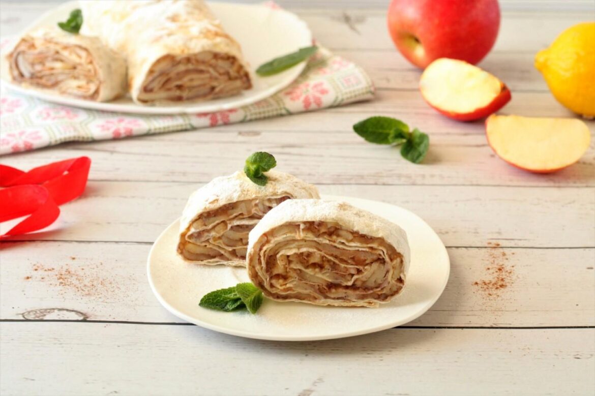 Рулет без випікання нашвидкуруч з лаваша та яблук