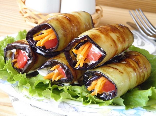 Цю страву можна назвати і святковою, рулетики красиво і яскраво виглядають на столі, а можна і щодня готувати її до вечері, це смачно та швидко! Отже, приготуємо рулетики з баклажанів з морквою!