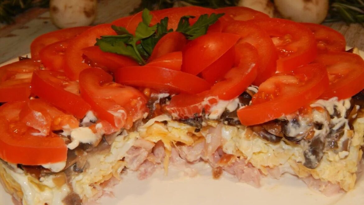 Дуже смачний та ситний салат “Чикаго” з копченою куркою та грибами. Спробувавши цей салат одного разу він безсумнівно стане одним з найулюбленіших.