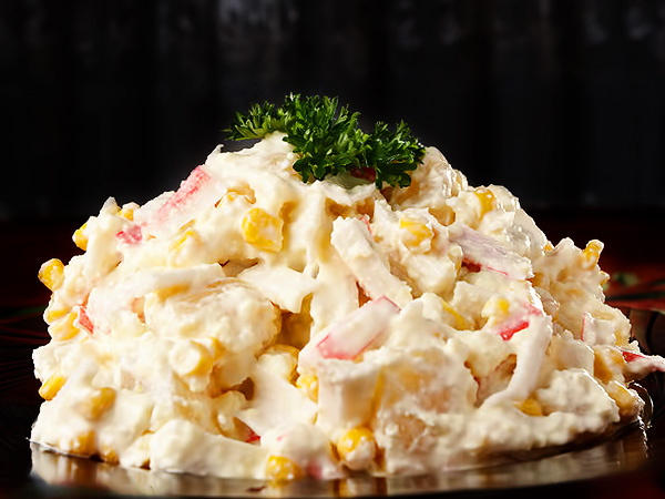Смачний і простий у приготуванні салат із крабових паличок з кукурудзою, сиром та яйцями готовий.