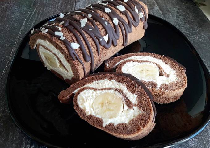 Шоколадно-банановий рулет в карамелі — смак розкаже сам за себе