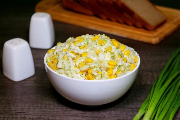 До капусти додайте кукурудзу, яйця, цибулю, кріп. Полийте соусом і перемішайте. Яскраві весняні кольори додадуть такого ж радісного настрою у ваше життя!
