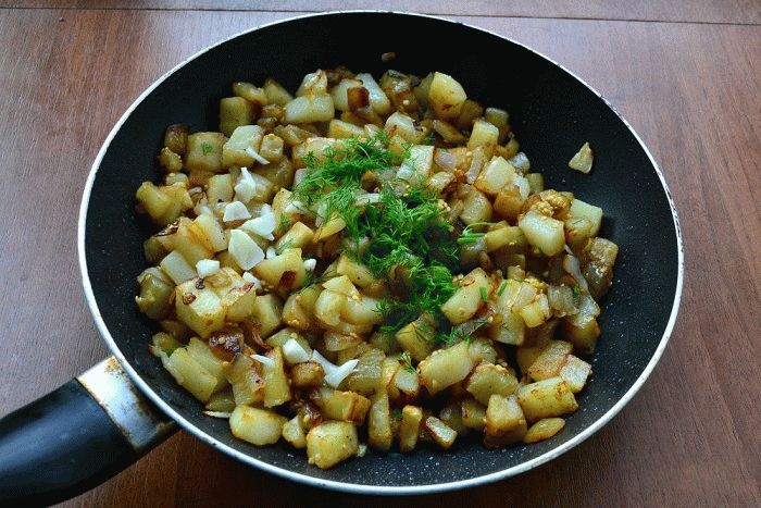 З баклажанів зніміть шкірку. А решту наріжте кубиком. Їх треба обсмажити на сковороді з олією до золотистої скоринки. Багато олії не наливайте. Зверніть увагу, що всі баклажани за раз не помістяться на сковороді. Якщо закласти все відразу, вони будуть тушкуватись. А нам потрібна скоринка на кубиках. Баклажани обсмажуйте або на двох сковорідках, або поетапно. Кожну партію приблизно по 7 хвилин.
