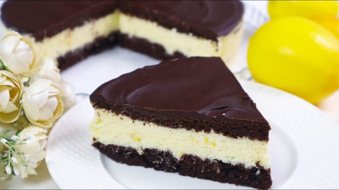Розрізати надвоє спечений корж і викласти начинку. Її буде багато – 3-5 см. Накрити другою половинкою коржа (скоринкою вверх) й полити глазур’ю, для якої потрібно розтопити шоколад, додавши масло.