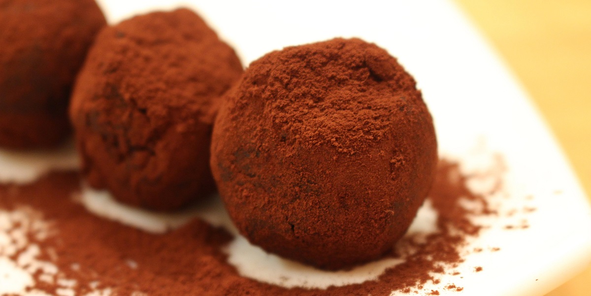 Тепер розріжте на квадратики, з яких скачайте круглі цукерки. Присипте какао. Готово. Смачного!