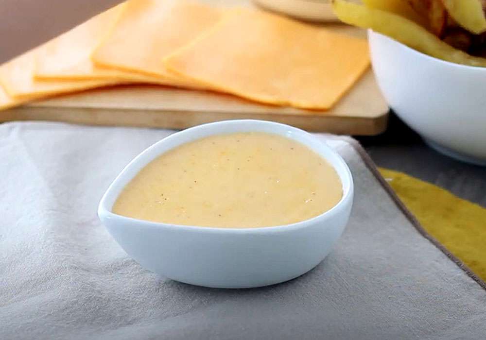 В соус всипте натертий сир та ретельно перемішайте. Він має розчинитись. Якщо ви хочете більш яскравий смак, можна додати трохи мускатного горіха. Перевірте консистенцію. Якщо соус загустий, долийте трохи вершків. Переважно соус подають гарячим. Смачного!