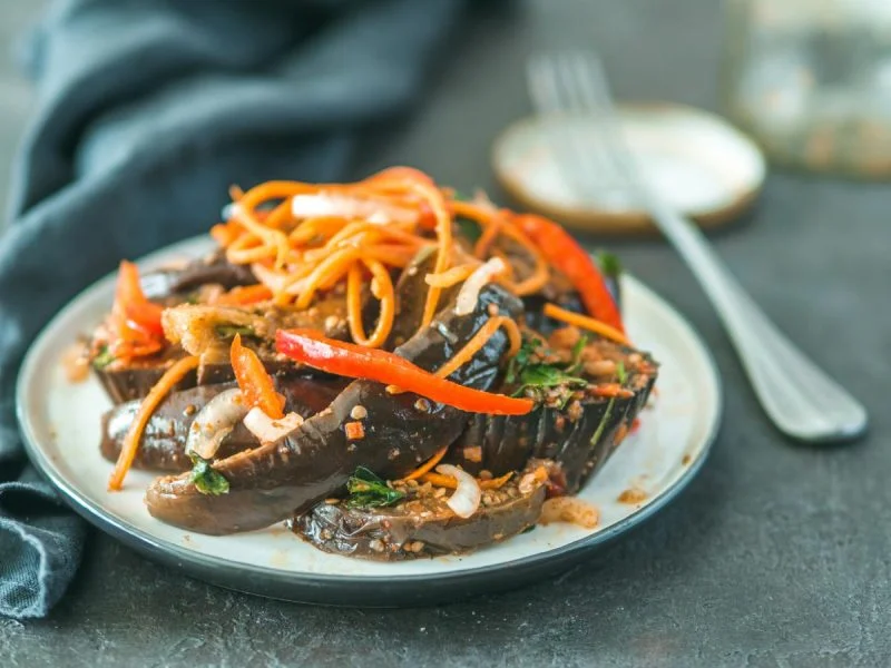 Баклажани на зиму заморожують або маринують з овочами та роблять різні заготовки. Пропонуємо вам варіант консервації, яка дає можливість замаринувати овочі цілими. Оригінально та смачно, а ще економить час на обробку баклажанів.