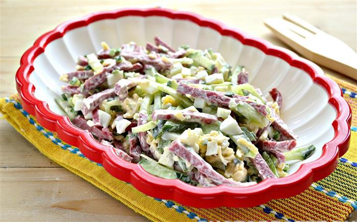 Всього за 10 хвилин: простий рецепт смачного салату з копченою ковбасою