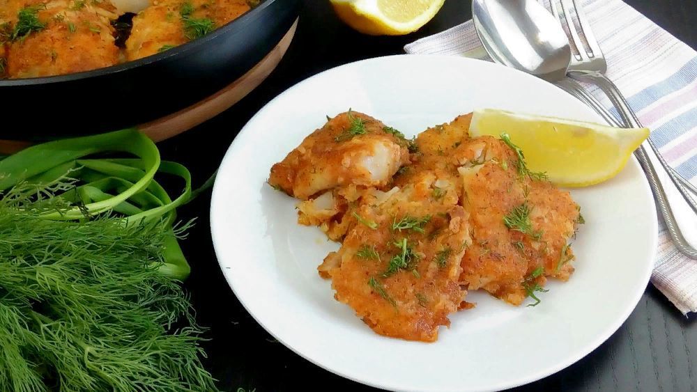 Якщо ви нарізали рибу досить крупними частинами, рекомендується наприкінці смаження накрити кришкою. Робіть це дозовано. Якщо перетримати, скоринка може стати м’якою.