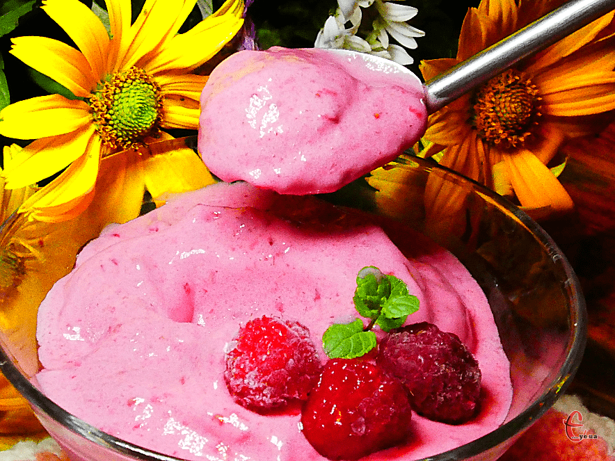 Ретельно все протягом хвилини збийте. М’яке морозиво готове. Свіженьке, смачне, ароматне. У травні вже варто морозилку готувати до нових врожаїв, тому готуйте корисне морозиво і втамовуйте спеку без солодощів із магазину.