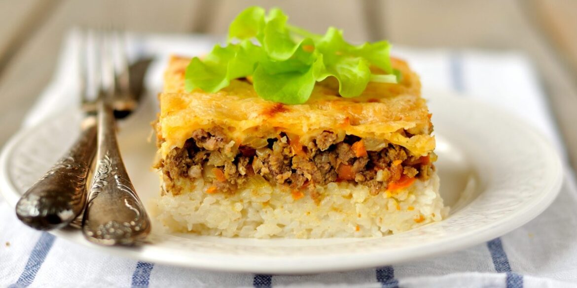 Смачна ідея для вечері — рисова запіканка. Не треба окремо готувати гарнір та м’ясну страву. Запіканка вирішить питання приготування смачної страви.