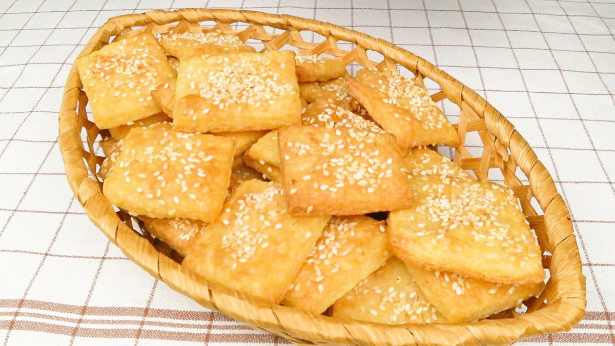 Кожен шматочок тіста-печива змастіть яйцем та посипте кунжутом.