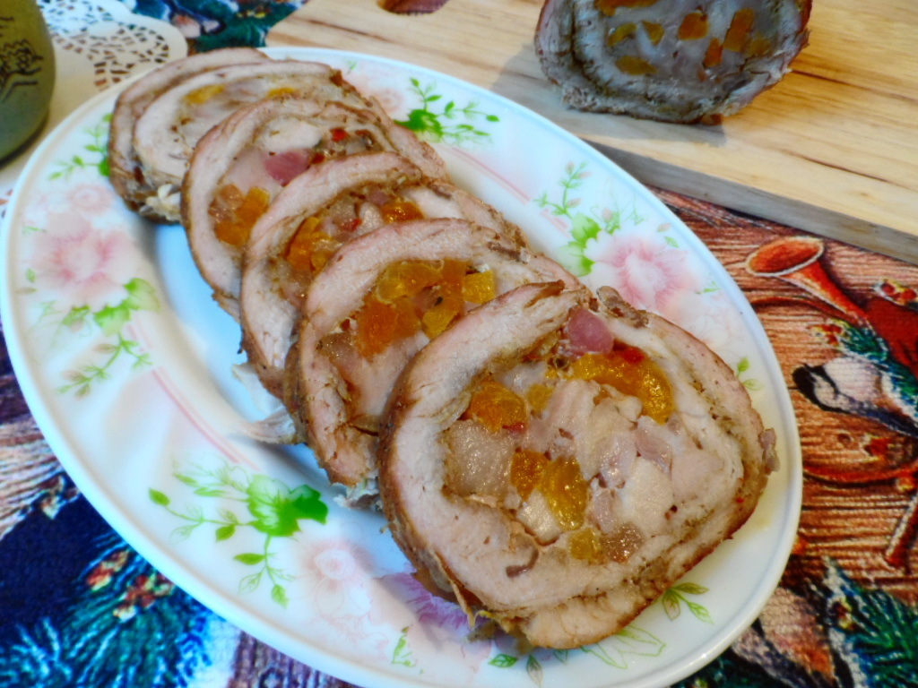Тепер начинку викладіть на індичку та згорніть рулет. Викладіть в форму для запікання та накрийте фольгою. Поставте запікатися при температурі 200 градусів протягом 30 хвилин. Потім відкрийте фольгу, змастіть сметаною з сіллю та поставте ще до отримання скоринки. Смачного!
