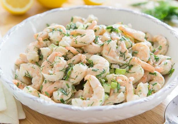Яблука треба почистити від шкірки. Наріжте дуже тонкими плястерками. Тепер додайте порублені горіхи та креветки. Перемішайте все разом та заправте майонезом.