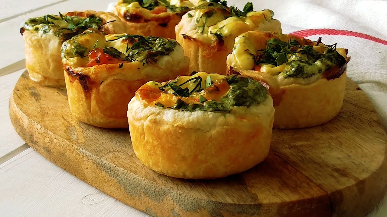 Вам потрібні невеликі порційні формочки. Виріжте з тіста кола та вкладіть їх у підготовлені форми. Далі розкладіть овочі з сиром. Змішайте яйце з вершками та залийте начинку.