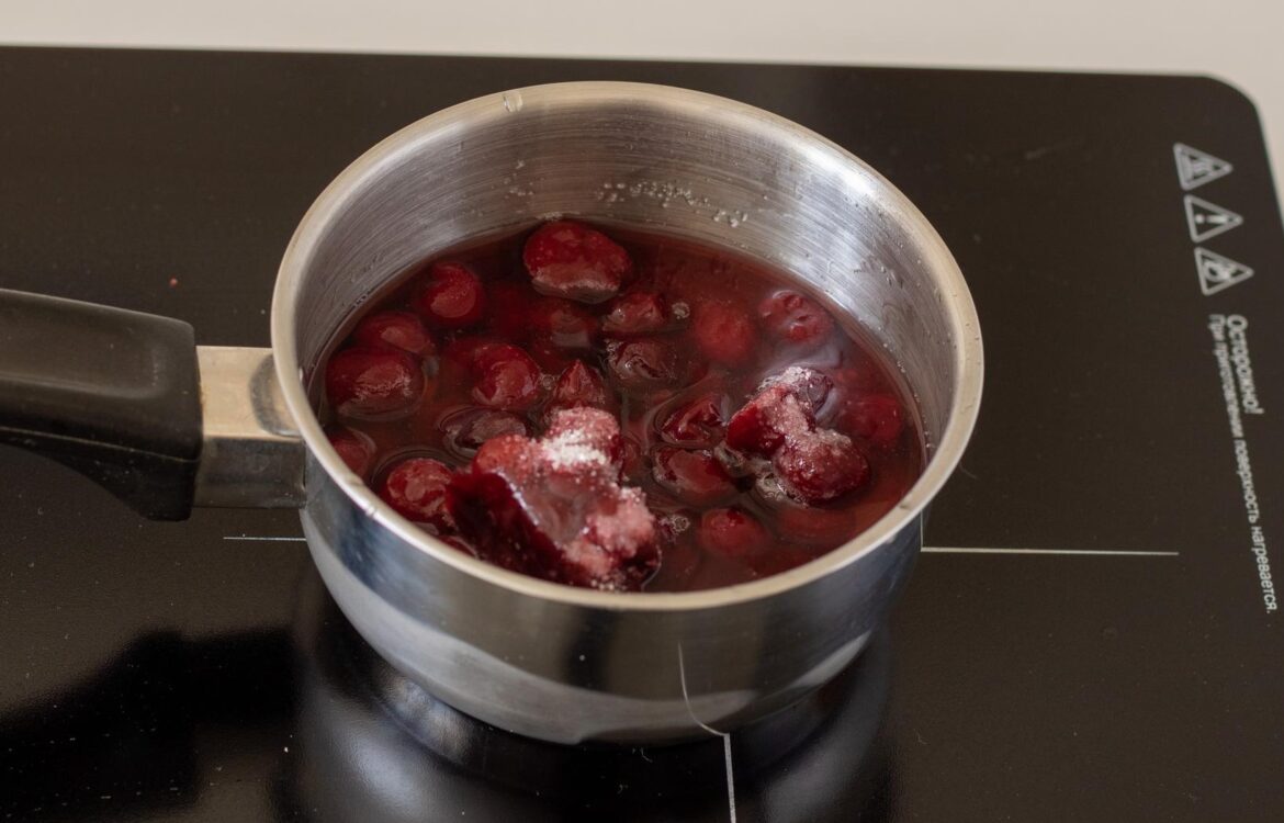 Вишню можна потім використати. Коржі будуть просочені ягідним сиропом, а ягоди найкраще додати в крем. Безвідходне виробництво сиропу для коржів.