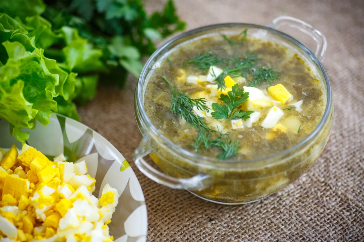 Для приготування смачного зеленого борщу, зваріть м’ясний бульйон.