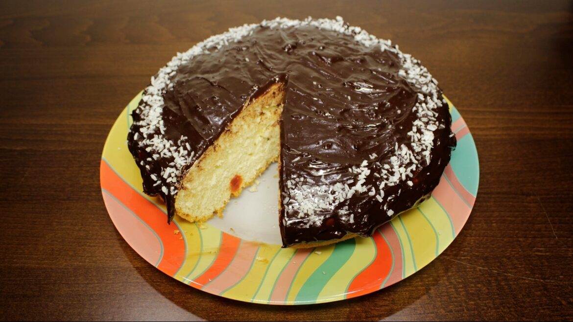 Зробіть глазур з цукру, масла, борошна, молока, какао. Все треба розтопити разом. Готовий пиріг полийте нею. Дайте трохи застигнути та охолонути. Смачного!