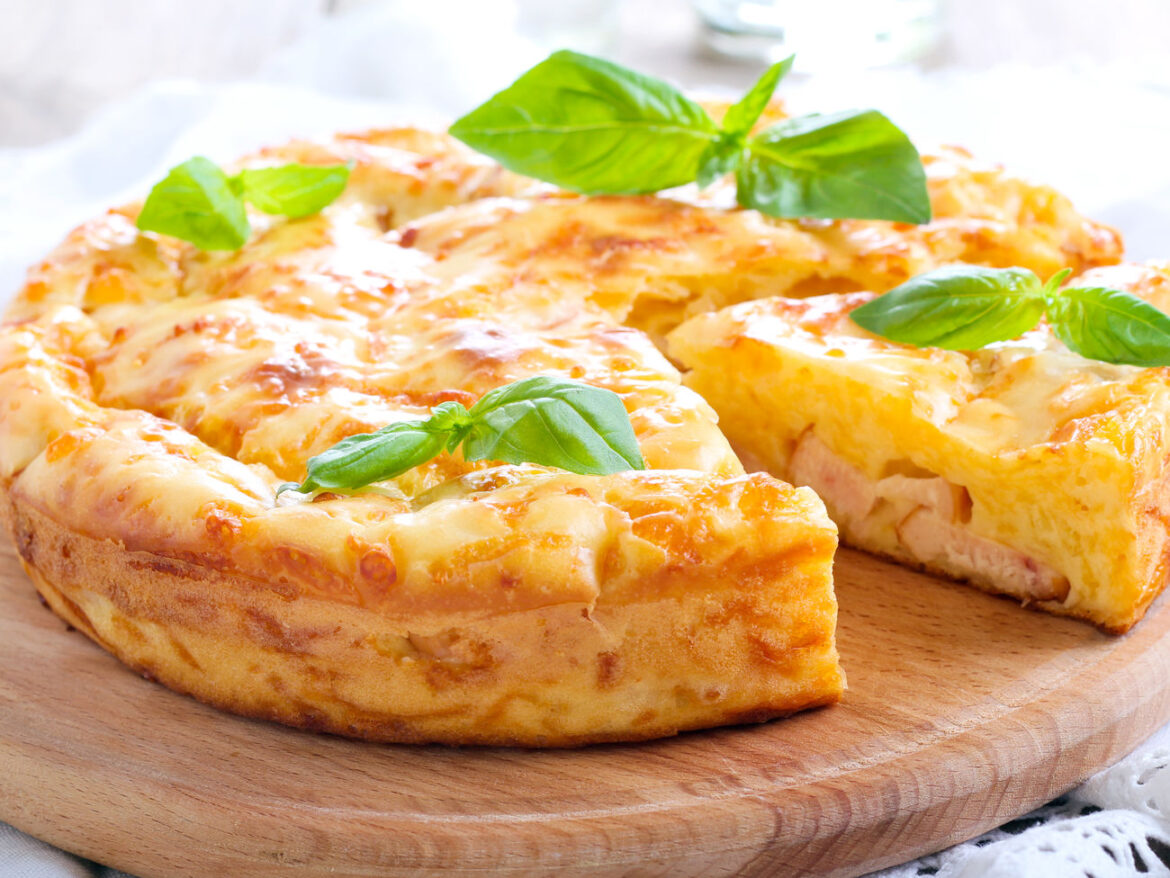 Закусочний кабачковий пиріг з шинкою та сиром