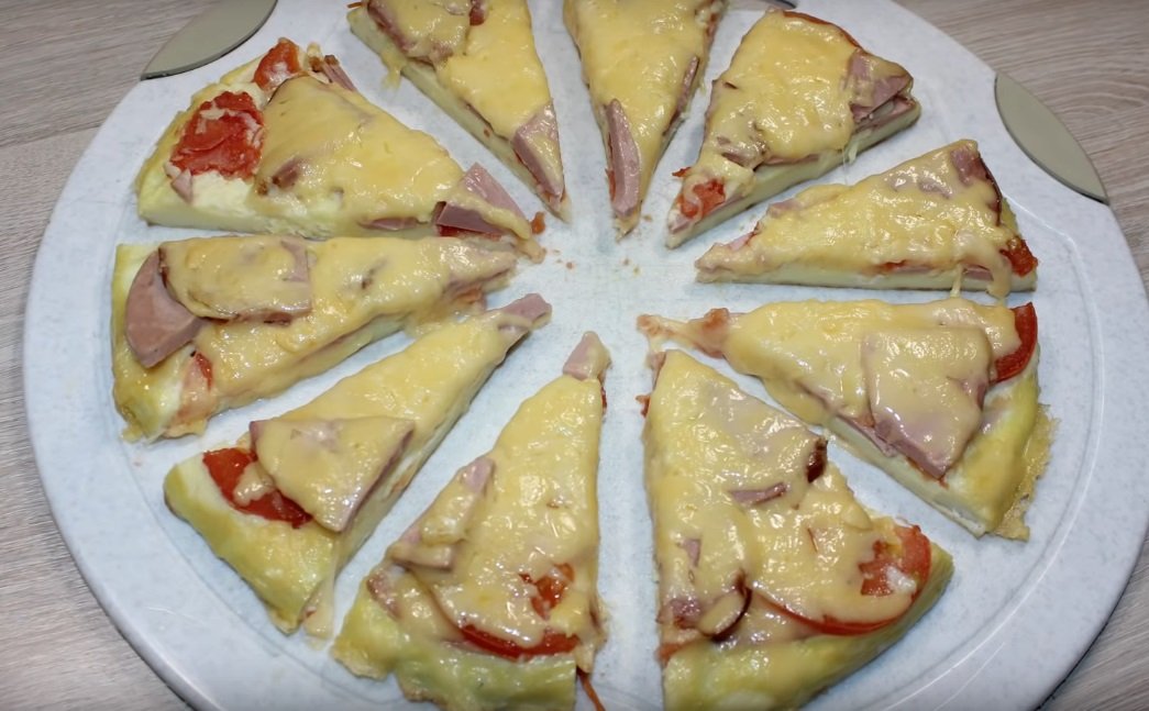 Піца-омлет готова. Дуже смачно та швидко. І пам’ятайте, що сосисок багато не буває. Смачного!