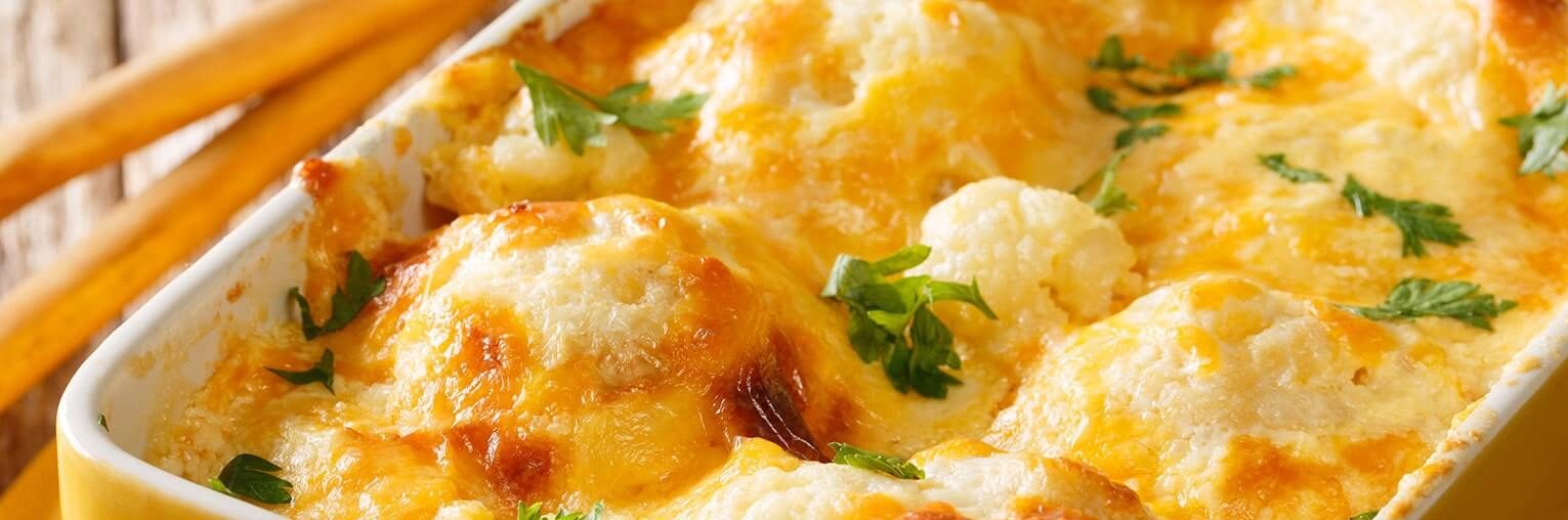 Капусту пропарену викладіть у форму для запікання. Поверх залийте приготовленим соусом та відправте запікатися протягом пів години при температурі 180 градусів.