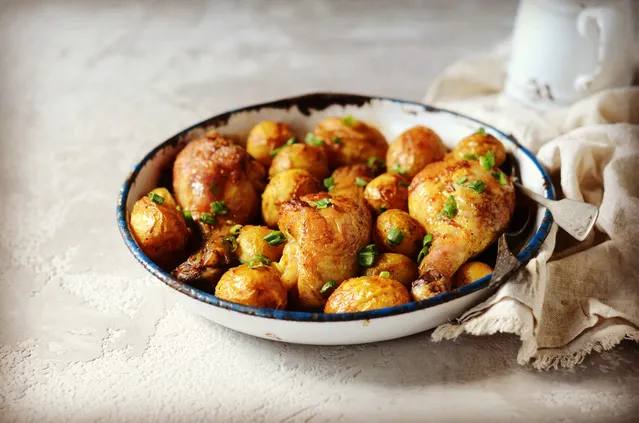 Курка, запечена в духовці, з картоплею, готується легко і просто! Страва, в якій поєднується ніжна картопля та ароматна рум’яна курочка, ідеально підходить для сімейного обіду чи вечері.