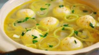 - Аккуратно выньте галушки шумовкой и добавьте в готовый суп.