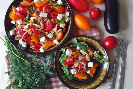 Пошаговый рецепт летнего салата с баклажанами, помидорами и сыром: просто и вкусно