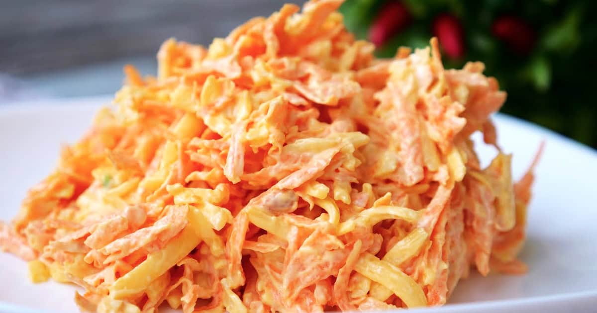 - Морковь: Отварная или сырая морковь, нарезанная мелкими кубиками или натертая на крупной терке, добавит салату сладости и яркого цвета. Быстрый салат "Белочка" с морковью – это отличный вариант для насыщения организма витаминами.