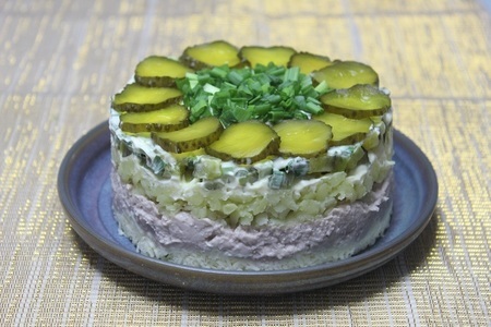 Слоеный салат с печенью трески: элегантность и вкус
