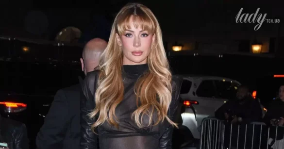 На ній була чорна прозора сукня максі з високою горловиною, під яку вона одягла лише чорні стринги. А от оголені пишні груди білявка прикрила волоссям.
