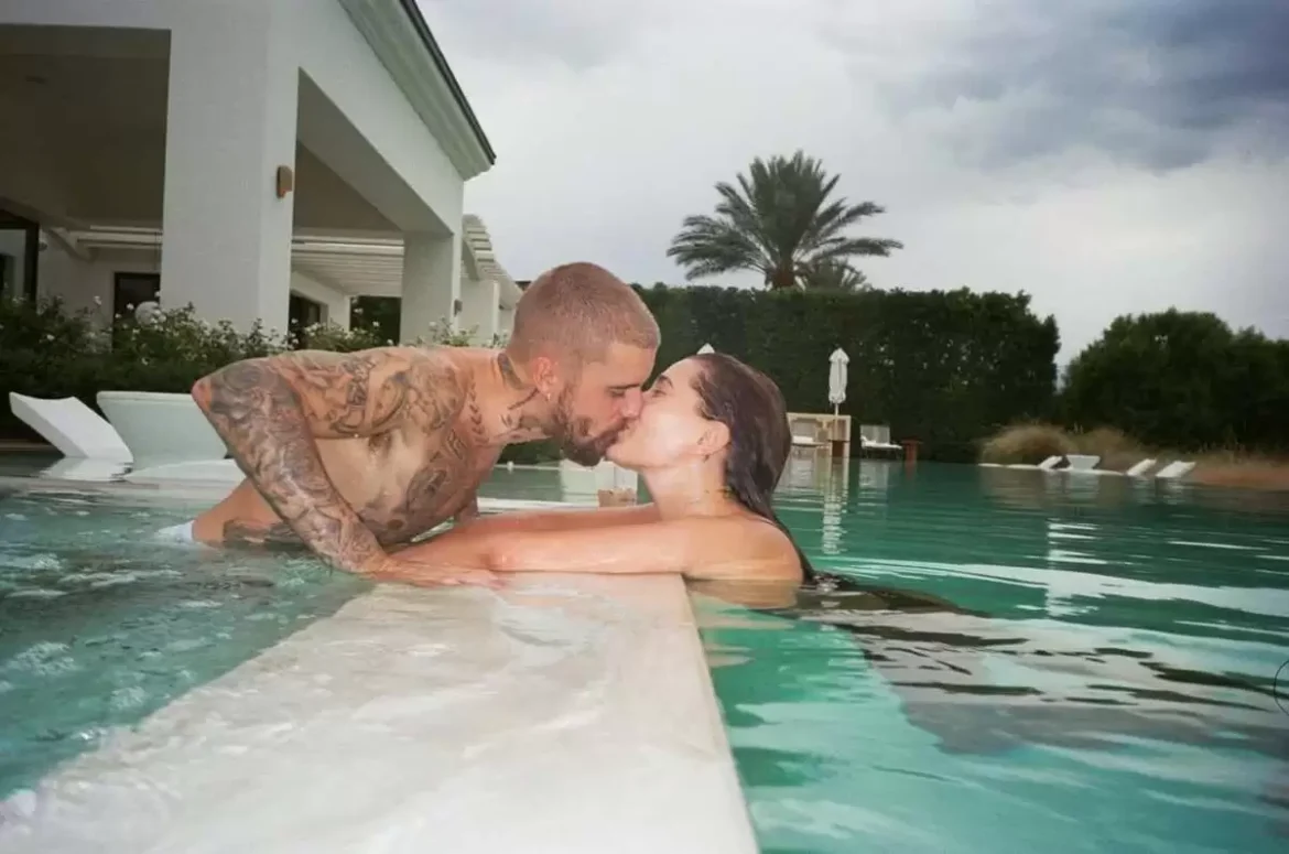 Найгарячіші кадри – це, звісно, їхні поцілунки у басейні. Джастін у білих плавках демонструє татуювання, а Гейлі в чорному бікіні і зачісці назад виглядає просто неймовірно.Фанати в коментарях буквально танули від ніжності пари: