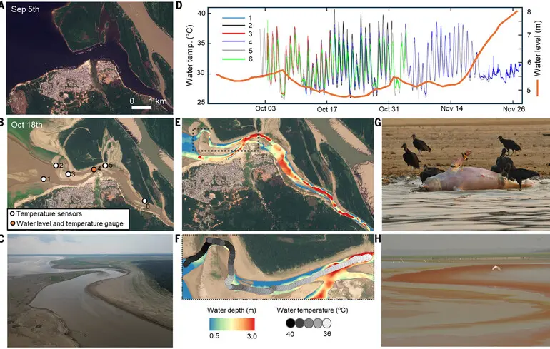 Команда під керівництвом Аяна Флейшманна з Інституту сталого розвитку Мамірауа в Бразилії провела дослідження десяти озер Амазонії та проаналізувала супутникові дані з 24 водойм за останні три десятиліття. Вчені зафіксували, що в половині обстежених озер температура перевищувала 37°C, а добові коливання сягали 13°C. Такі екстремальні умови створювали критичний термічний стрес для риб, дельфінів та інших водних організмів.