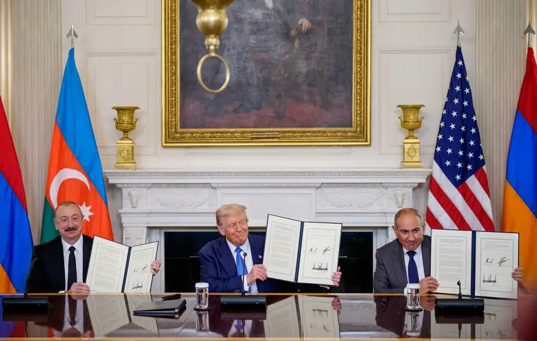 Після того як американський президент залагодив конфлікт Таїланду з Камбоджею, а також Пакистану з Індією, минулої п’ятниці у Вашингтоні він мирив іще дві країни. Ні, це були не Україна й Росія. Цього разу — Азербайджан і Вірменія: президент Ільхам Алієв і прем’єр-міністр Нікол Пашинян, а також глави МЗС обох країн підписали в Білому домі пакет документів, які мають стати основою для остаточного врегулювання більш ніж 35-річного конфлікту між Баку та Єреваном.
